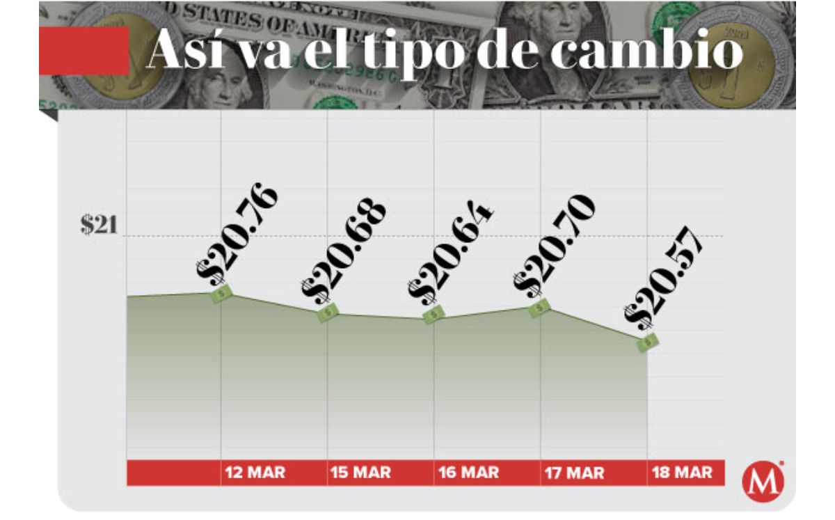 El Banco de México (Banxico) registró la sesión previa un tipo de cambio de 20.68 pesos por dólar.