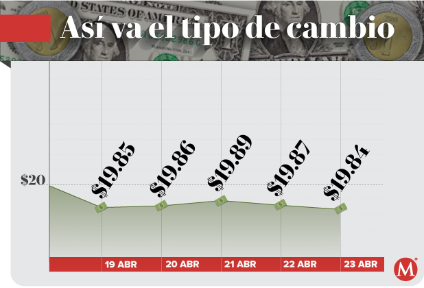 Durante la sesión, se espera que el tipo de cambio cotice entre 19.78 y 19.99 pesos por dólar.