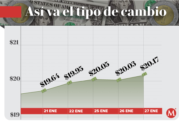 El Banco de México (Banxico) registró la sesión previa un tipo de cambio de 20.01 pesos por dólar.