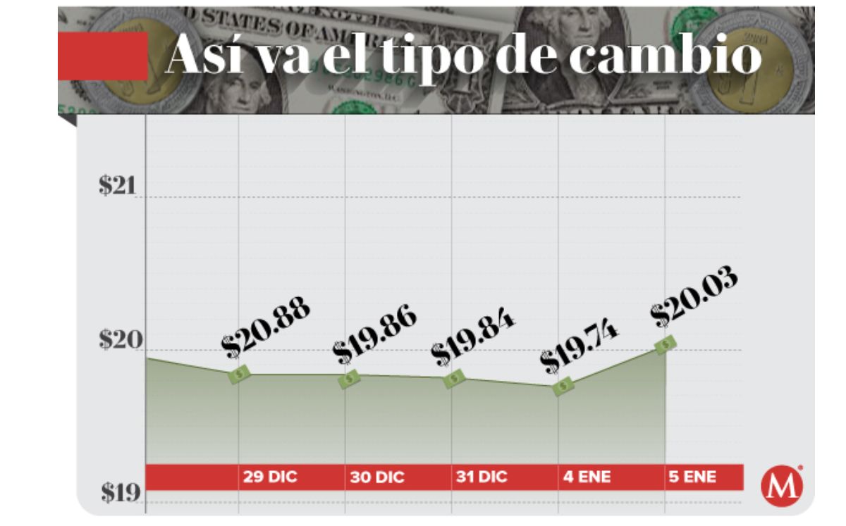 Durante la sesión, se espera que el tipo de cambio cotice entre 19.89 y 20.12 pesos por dólar.