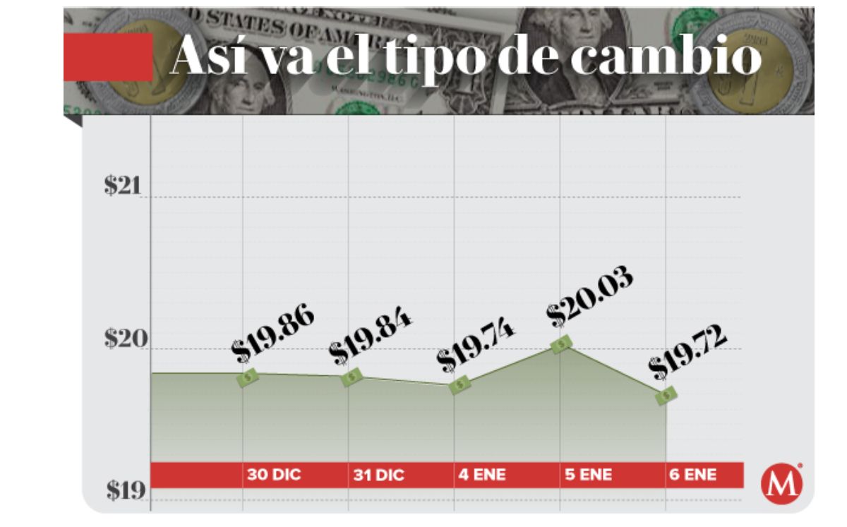 El Banco de México (Banxico) registró la sesión previa un tipo de cambio de 19.94 pesos por dólar.