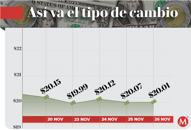 Al iniciar operaciones el precio del dólar hoy jueves es de hasta 20.50 pesos en bancos. En tanto, el tipo de cambio interbancario se ubica en 20.01 pesos por dólar, con una pérdida del 0.4 por ciento.