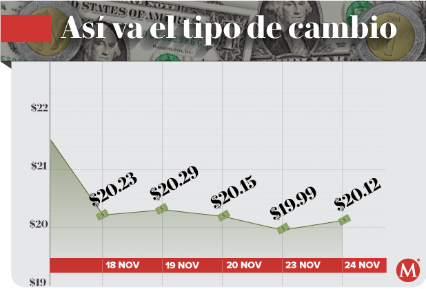 El Banco de México (Banxico) registró la sesión previa un tipo de cambio de 20.10 pesos por dólar.