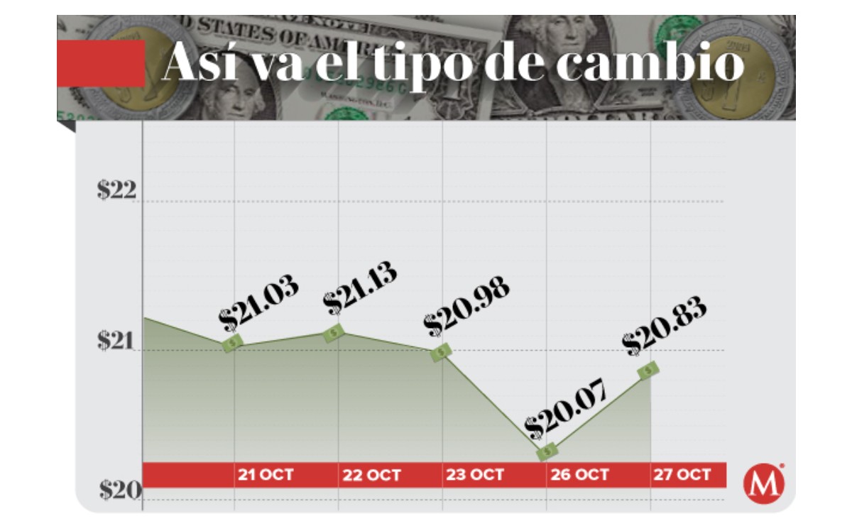 El peso mexicano se apreciaba moderadamente luego de que el dólar cedió ganancias iniciales a pesar de las preocupaciones sobre un incremento de infecciones por coronavirus SARS-CoV-2, que causa la enfermedad covid-19, mientras la cautela prevalecía entre los inversionistas antes de las elecciones en Estados Unidos la próxima semana.