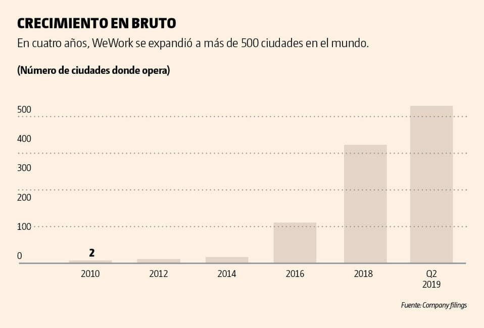 La industria inmobiliaria en los últimos años acogió a WeWork y sus rivales. La empresa tiene 2.3 millones de metros cuadrados de espacio de oficinas en Nueva York y 1.2 millones en Londres, de acuerdo con el proveedor de datos CoStar, lo que lo convierte en el inquilino privado más grande en ambas ciudades. Otras de las ubicaciones clave incluyen San Francisco, Bangalore y Shanghai.