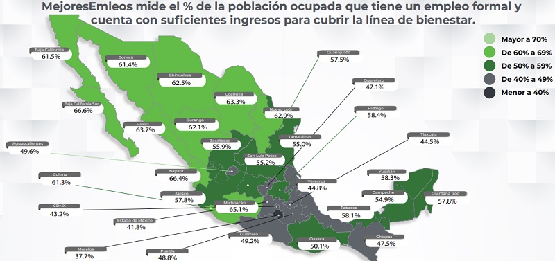 Los mejores empleos en México se encuentran en 10 estados, y entre ellos se encuentran Baja California Sur, Nayarit, Michoacán, Sinaloa y Coahuila, esto debido a que concentran más del 60 por ciento de trabajos formales bien remunerados, reveló la Confederación Patronal de la República Mexicana (Coparmex).