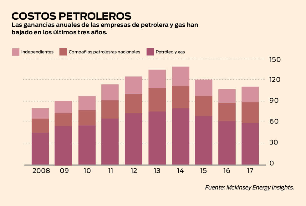 “Los niveles de desempeño son más altos que los del año pasado”. Una mayor eficiencia ayudará a mejorar los rendimientos de los accionistas, pero, cada vez más, se ve como un requisito previo para la supervivencia de las compañías petroleras en un mundo de abundantes recursos de esquisto y una energía renovable cada vez más barata.