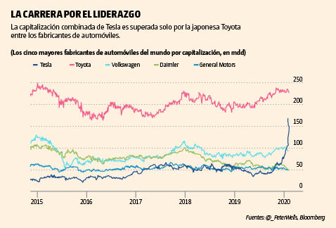 es el valor de mercado de Tesla, una posición mejor que la de VW