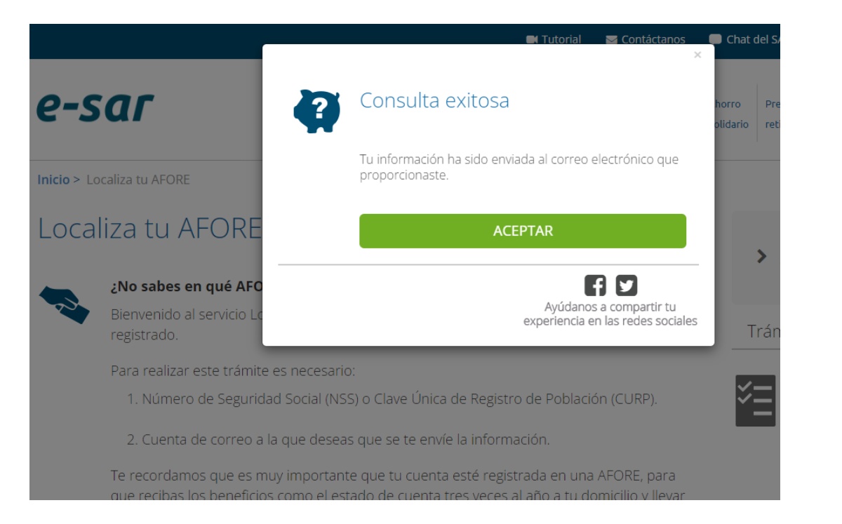 - Por Internet: en www.e-sar.com.mx, ingresando a la sección Localiza tu AFORE