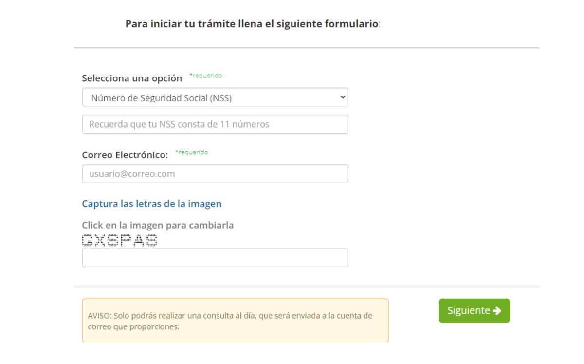 OJO. Si "El NSS o CURP que escribiste no fue encontrado. Intenta de nuevo o llama al 55 1328 5000 y digita la opción 2”. Este mensaje se refiere a que con los datos proporcionados no existe una Cuenta Individual en el Sistema de Ahorro para el Retiro.