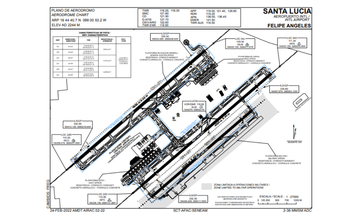 Hoy la Secretaria de Infraestructura Comunicaciones y Transportes (SICT) publicó las cartas de navegación aérea en el Manual de Publicación de Información Aeronáutica (PIA) que contienen los programas de aproximación, llegada y salida de del Aeropuerto Internacional Felipe Ángeles (AIFA).