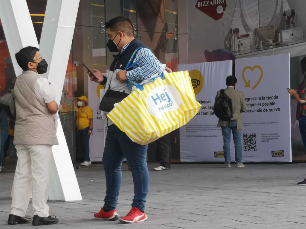 Personas saliendo solas o acompañadas de algún familiar, iban con carritos; otros con las icónicas bolsas a rayas de la sueca, con muebles listos para armar, cortinas, plantas, artículos para el hogar, oficina o mascotas.