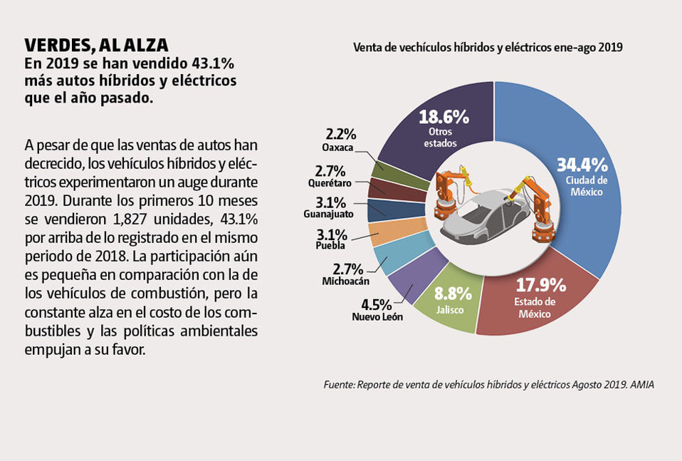 Según cifras de la AMIA, las ventas en los primeros diez meses de 2019 en el mercado mexicano se integraron con 34% de vehículos producidos en nuestro país y 66% de origen extranjero.
