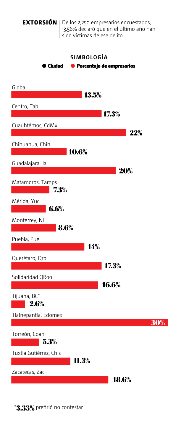 Porque además, en esta franja turística quintanarroense, la extorsión oficial de los inspectores municipales también se ha normalizado, pues según las cámaras locales, a los empresarios registrados en el municipio de Solidaridad , dependiendo de su nivel, se les cobra entre mil o 2 mil pesos a los más pequeños, hasta 50 mil o 100 mil pesos a los más desarrollados.