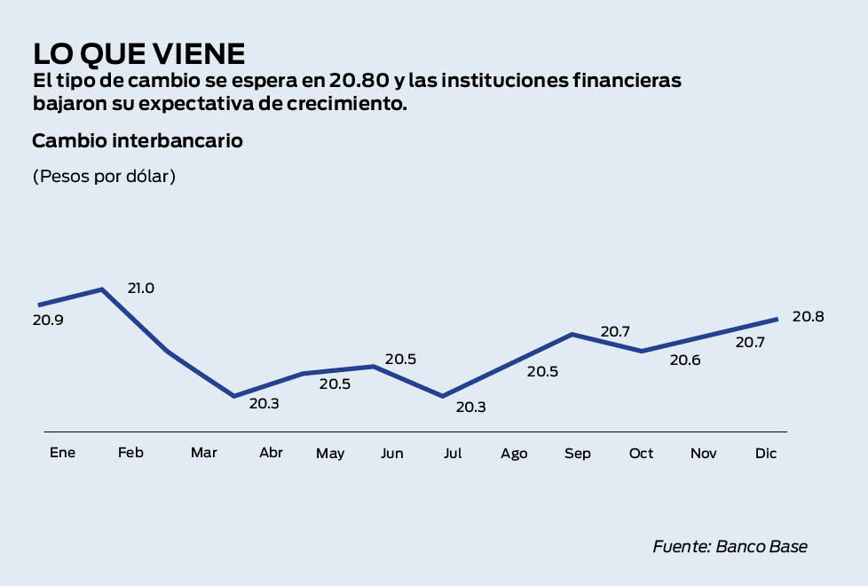 El tipo de cambio cerrará 2019 en 20.50 pesos por dólar, estima Citibanamex. “En nuestra perspectiva, la reciente depreciación del peso no se revertirá”, dice Sergio Luna, analista del banco, en una nota especial. Sin embargo, Siller considera que en los primeros meses del próximo año tocará los 21 pesos por dólar, ante factores como el proteccionismo comercial y aumentos en las tasas de interés de EU.