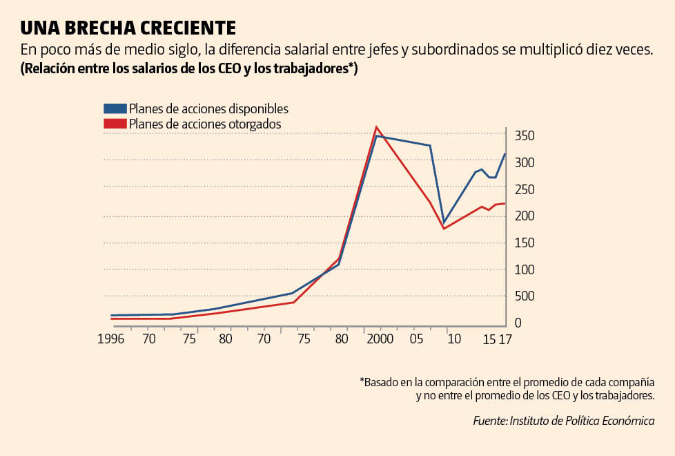 El múltiplo de hace 40 años, de acuerdo con una investigación del Instituto de Política Económica de Estados Unidos, era de menos de 30.