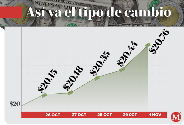 Banco Base publicó en su reporte que el peso inicia la sesión con una depreciación de 0.50 por ciento o 10.35 centavos, cotizando alrededor de 20.67 pesos por dólar, con el tipo de cambio tocando un mínimo de 20.54 y un máximo de 20.70 pesos.
