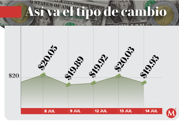Según con Banco Base, el peso inicia la sesión con una apreciación de 0.69 por ciento o 12.9 centavos, cotizando alrededor de 19.92 pesos por dólar, con el tipo de cambio tocando un mínimo de 19.9122 y un máximo de 20.06 pesos.