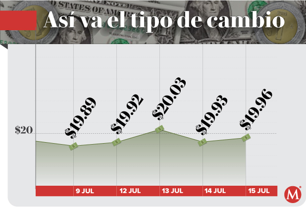La directora de análisis económico-financiero de Banco BASE, Gabriela Siller, explicó en que el peso inicia la sesión con una depreciación de 0.36 por ciento o 6.9 centavos, cotizando alrededor de 19.95 pesos por dólar, con el tipo de cambio tocando un mínimo de 19.86 y un máximo de 19.95 pesos.