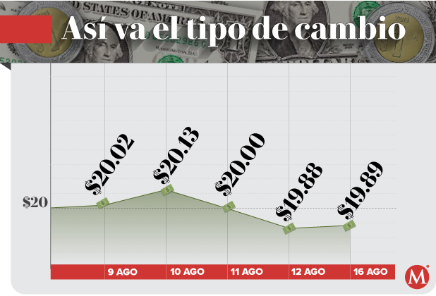 "Para hoy estimamos un rango de fluctuación entre 19.80 y 19.98 pesos por dólar, considerando niveles clave de soporte en $19.80 y de resistencia en 20.00 pesos por dólar", refirió.