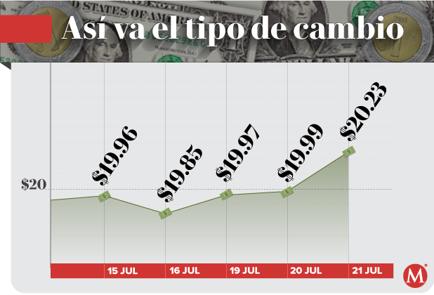 “Para hoy estimamos un rango de fluctuación entre 20.10 y 20.30 pesos por dólar, considerando niveles clave de soporte en 20.05 y de resistencia en 20.40 pesos por dólar”, refirió.