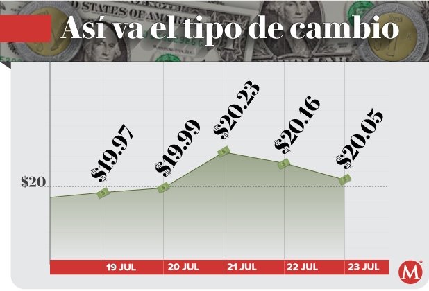 El Banco de México (Banxico) registró la sesión previa un tipo de cambio de 20.18 pesos por dólar.
