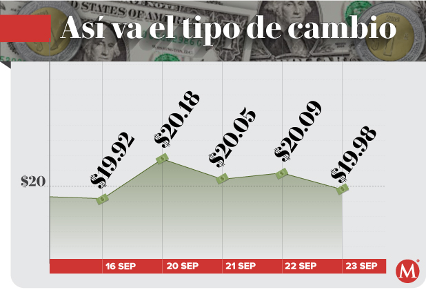 El Banco de México (Banxico) registró la sesión previa un tipo de cambio de 20.03 pesos por dólar.