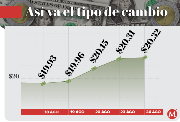 Detalló que la depreciación del peso se debe a la cautela entre los participantes del mercado en anticipación a la presentación de Jerome Powell en Jackson Hole el viernes, pues una postura monetaria restrictiva, podría ocasionar un fortalecimiento del dólar.