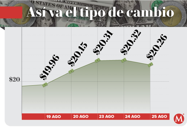El primero. El dólar estadunidense se fortalece 0.18 por ciento, pues el mercado se mantiene cauteloso, a la espera del simposio de Jackson Hole, en donde será clave la participación del presidente de la Fed, Jerome Powell.