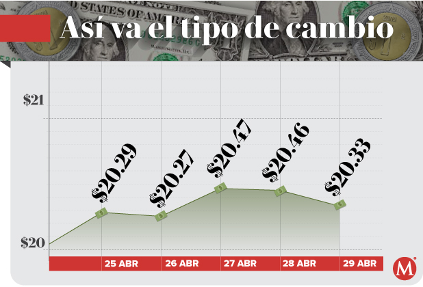 “Para hoy estimamos un rango de fluctuación entre 20.27 y 20.50 pesos por dólar, considerando niveles de soporte en 20.25 pesos y de resistencia en 20.55 pesos por dólar”, refirió