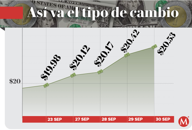 El Banco de México (Banxico) registró la sesión previa un tipo de cambio de 20.49 pesos por dólar.