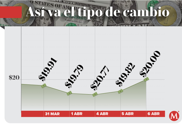 Banco Base publicó en su reporte que el peso inicia la sesión con una depreciación de 0.16 por ciento o 3.1 centavos, cotizando alrededor de 20.03 pesos por dólar, con el tipo de cambio tocando un mínimo de 19.98 y un máximo de 20.07 pesos.