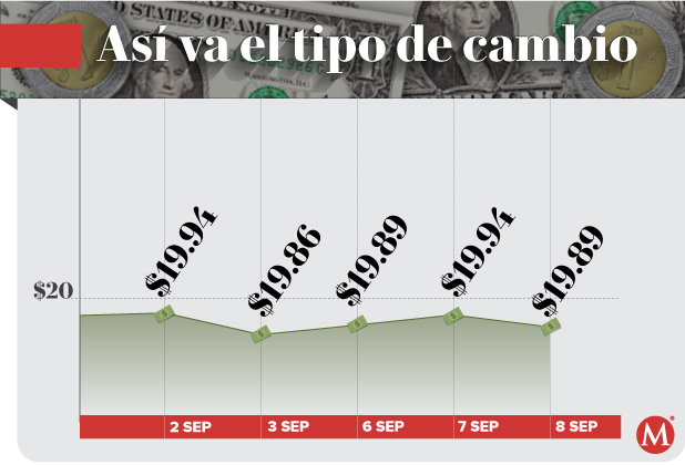 El Banco de México (Banxico) registró la sesión previa un tipo de cambio de 19.94 pesos por dólar.