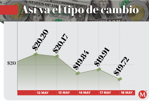 El Banco de México (Banxico) registró la sesión previa un tipo de cambio de 19.80 pesos por dólar.