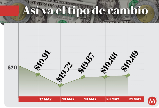 El Banco de México (Banxico) registró la sesión previa un tipo de cambio de 19.88 pesos por dólar.