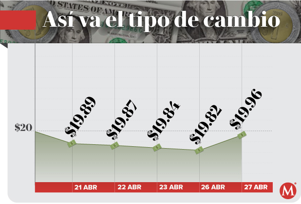 El Banco de México (Banxico) registró la sesión previa un tipo de cambio de 19.83 pesos por dólar.