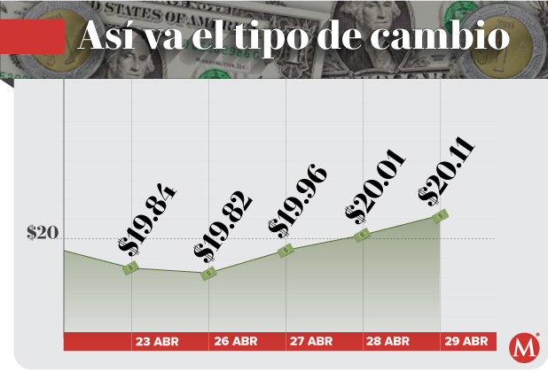 El Banco de México (Banxico) registró la sesión previa un tipo de cambio de 19.97 pesos por dólar.
