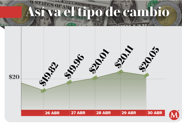 Citibanamex vende el dólar en 20.65 pesos, mientras Banorte lo hace en 20.30 pesos, BBVA México en 20.30, Banco Azteca en 20.09 y Santander en 20.17 unidades.