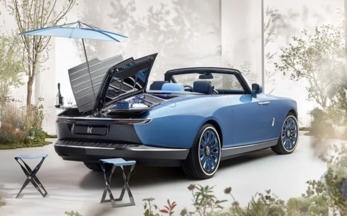 El kit se complementa con un dos pequeñas mesas que giran hacia afuera en la parte trasera y se pueden retirar dos pequeños banquitos, por lo que el Rolls-Royce Boat Tail es un capricho caro para detenerse a tomar champaña en algún sitio.