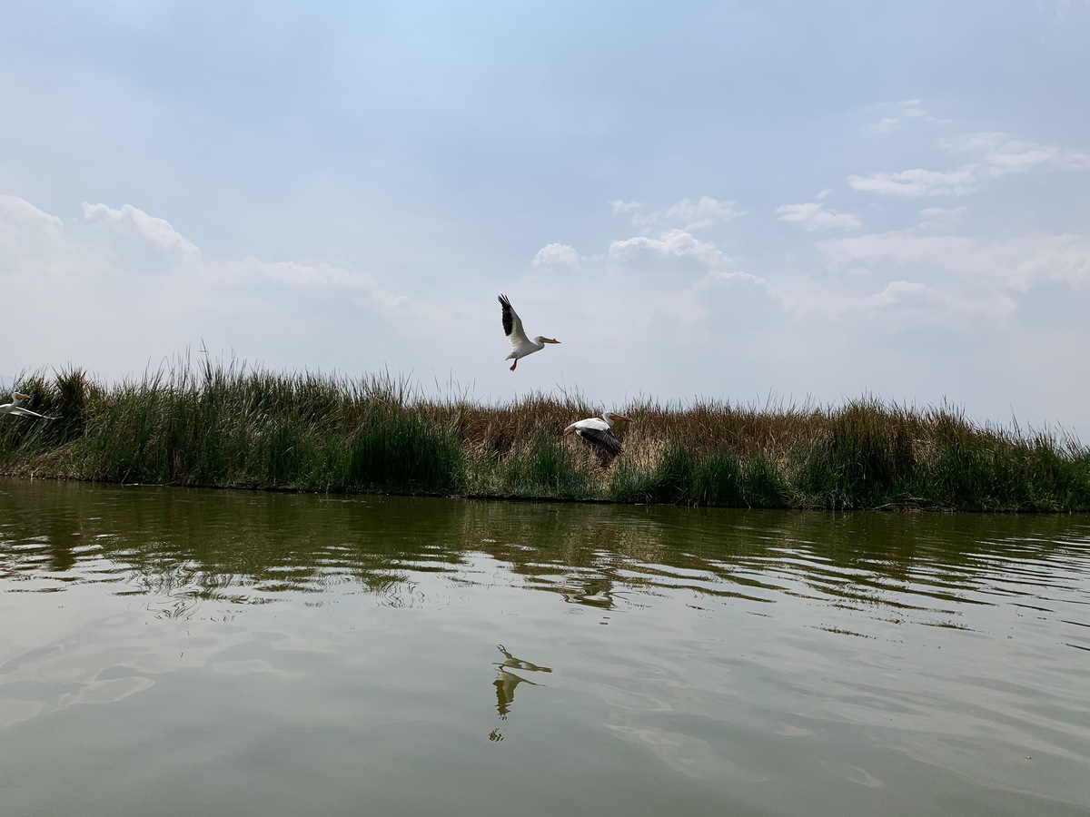 Un aire fresco sopla alrededor del lago, no obstante los rayos del sol que irradian sobre esta planicie, mientras pelícanos y garzas migratorias planean sus últimos vuelos y acuatizan, pues pronto migrarán hacia Canadá. Los patos criollos y otros pájaros nativos, mientras tanto, disfrutan las tranquilas aguas en las que se desarrollan mojarras salvajes.