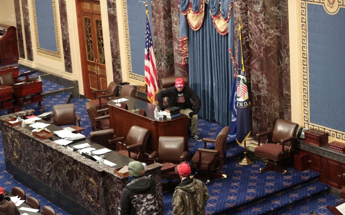 Secor fue capturado en video y fotos en el interior del Capitolio de los Estados Unidos portando una gorra roja con la leyenda “Make America Great Again” (Hagan América Grandiosa Otra Vez) y ocupando la silla donde Pence estaba sentado durante la certificación de los votos electorales conducida por el Senado. Al menos 11 informantes lo identificaron.