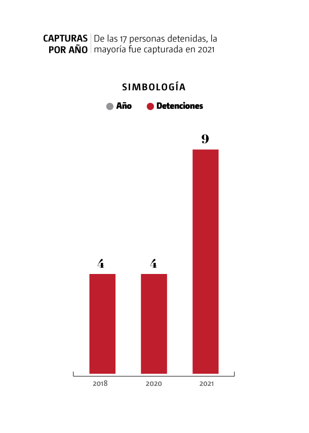Las detenciones ocurrieron en el Pacífico colombiano, en las costas mexicanas y en aguas internacionales en los límites de México y Estados Unidos. En nueve de los 17 expedientes a los que se tuvo acceso se detalla que quien marcó la ruta fue el cártel de Sinaloa o el Cártel Jalisco Nueva Generación. En 2018 ocurrieron cuatro detenciones, al igual que en 2020. Para 2021 la cifra se incrementó a nueve arrestos.