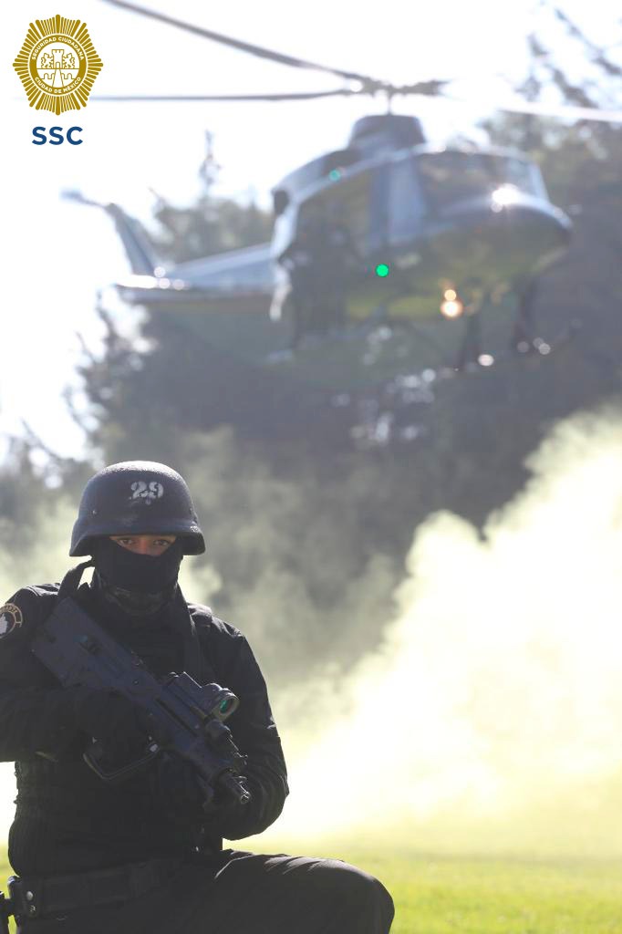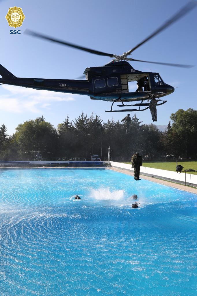 El evento contó una exhibición, en la que los elementos mostraron los conocimientos adquiridos en el curso, el cual contó con temas como el combate a delitos de alto impacto, y con el apoyo desde el aire con helicópteros del agrupamiento Cóndores, simularon un rescate de secuestro que abarcó una inserción acuática, una incursión a una casa de seguridad y una evacuación aeromédica.