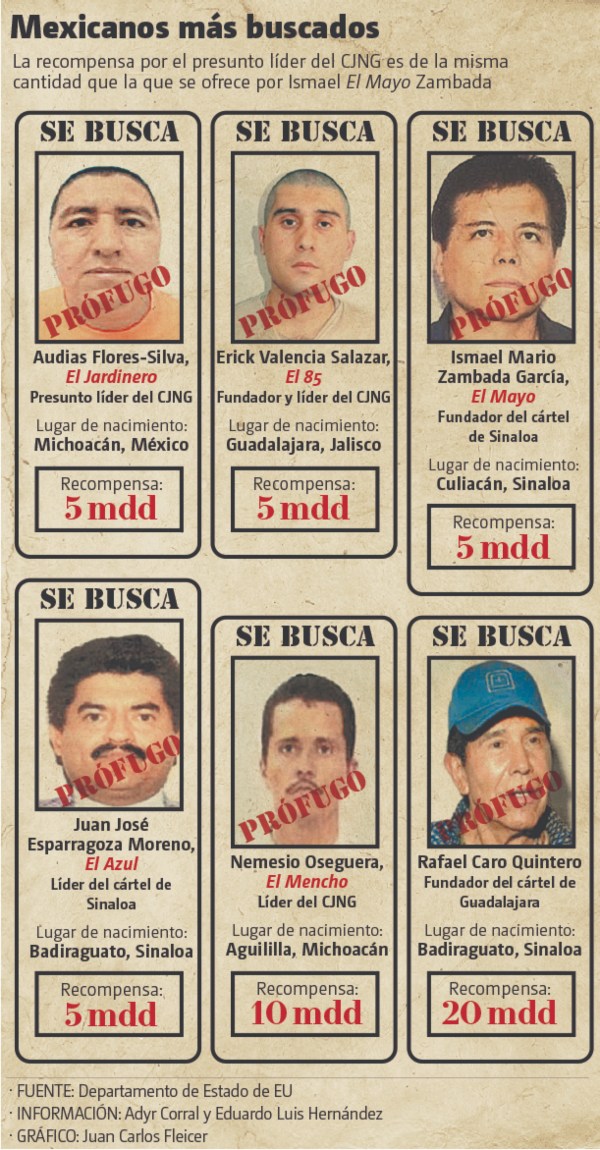 El gobierno estadunidense señala a Audias Flores Silva como una persona "muy alineada con el líder del CJNG, Nemesio Rubén Oseguera Cervantes, El Mencho, quien también es un objetivo designado del Programa de Recompensas de Narcóticos del Departamento de Estado (NRP) y por quien e ofrece una recompensa de hasta 10 millones de dólares por información que conduzca a su arresto y / o condena.