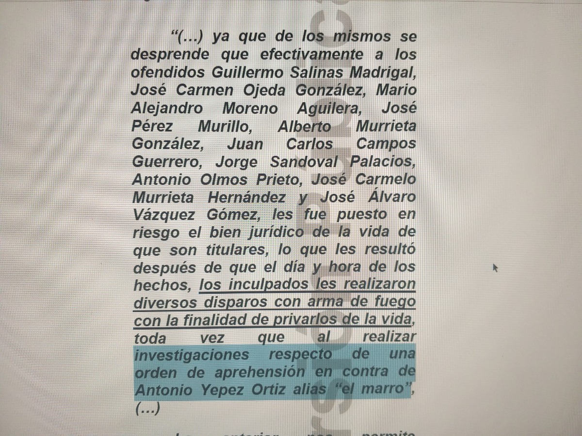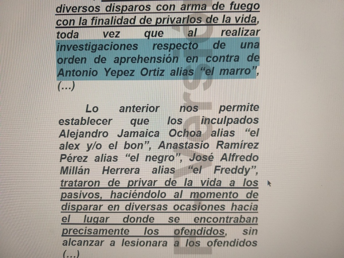 “Nos aproximamos al sitio exacto que era señalado por las personas que nos acompañaban, como el jardín donde verían a El Marro. Cuando de pronto de forma inesperada comenzamos a recibir una agresión por parte de unos sujetos, los cuales se encontraban en la parte superior de una casa que se encontraba en construcción, lugar desde el que estábamos siendo agredidos y debido a ello fue que nos desplazamos a un costado de la vivienda a fin de resguardarnos y proteger nuestra integridad ante las detonaciones de arma de fuego que en ese momento nos estaban realizando”.