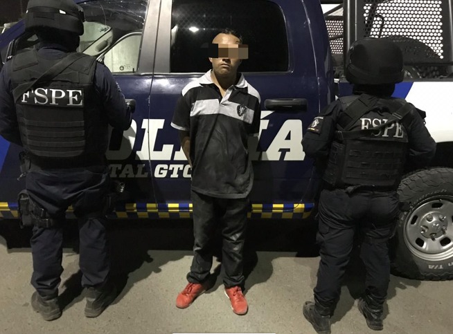 Inmediatamente y después de ser ubicados en la colonia Solidaridad, elementos del Grupo Táctico Operativo (GTO) de las FSPE acudieron al lugar para la detención de: Juan Fabián “N” de 24 años, con domicilio en la colonia San Miguel de la ciudad de Pénjamo, quien cuenta con ocho arrestos por diversas faltas administrativas.