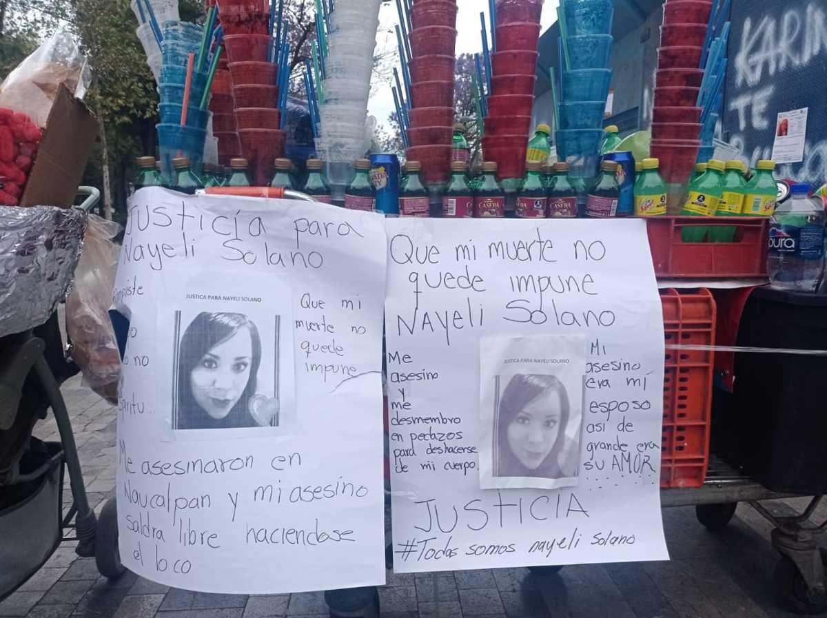 "La mató la persona que era el amor de su vida y no solo eso, también me la deshizo por completo. Dejó dos hijos huérfanos. La mató tras una discusión, la ahorcó y cortó a mi mamá en varias partes. Me la destazó. Yo tuve que reconocerla, desgraciadamente", recuerda Alison con lágrimas en los ojos. Ella tiene 18 años, un hermano de 17 y ahora vive con sus abuelos, de quienes se hace cargo económicamente mediante su trabajo como comerciante en el Centro Histórico, tras haber perdido a su madre. Durante la manifestación por el Día de la Mujer, sus compañeros comerciantes se manifestaron de manera pacífica con cartelones pegados en sus puestos de trabajo, exigiendo justicia para Nayeli.