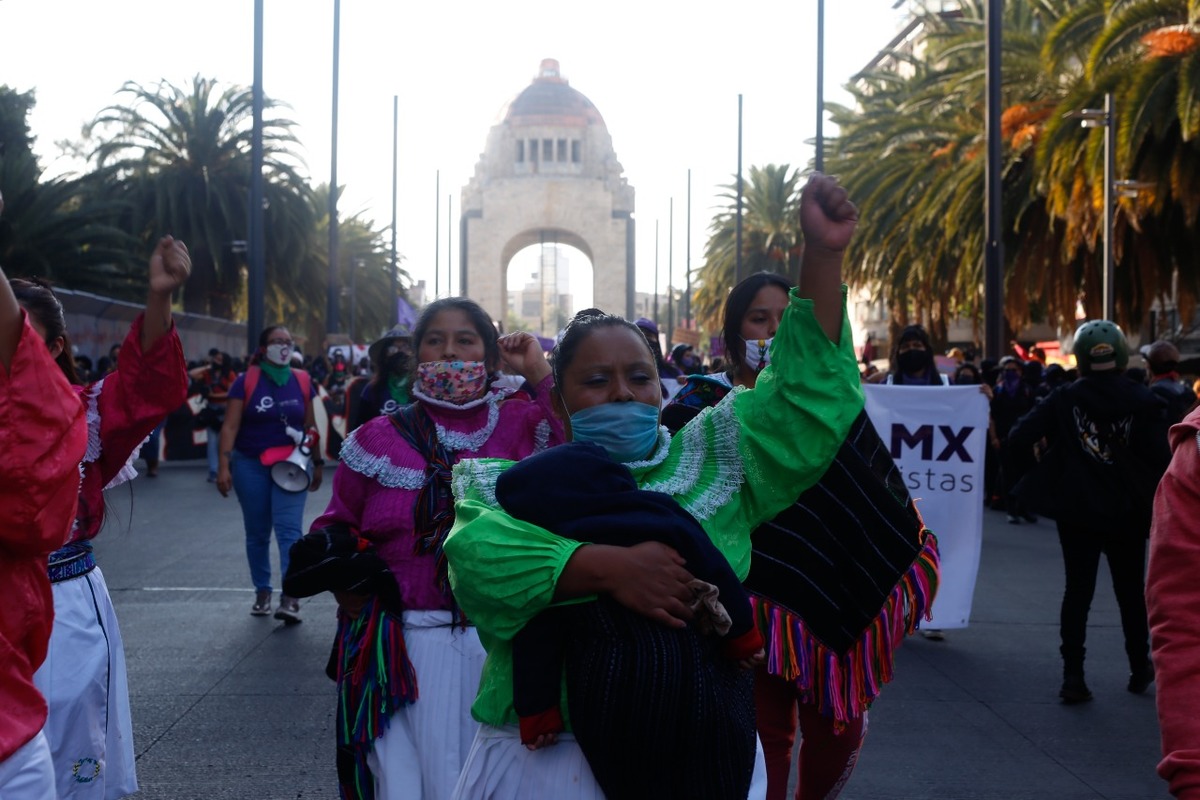 A las tres y media de la tarde las activistas comenzaron a congregarse en la explanada del monumento a la Revolución, madres de víctimas de feminicidios, mujeres en resiliencia, así como colectivos feministas, se dieron cita en este espacio con el objetivo de marchar hacia el Zócalo para pedir un alto a los feminicidios que se cobran la vida de al menos 10 mujeres al día.