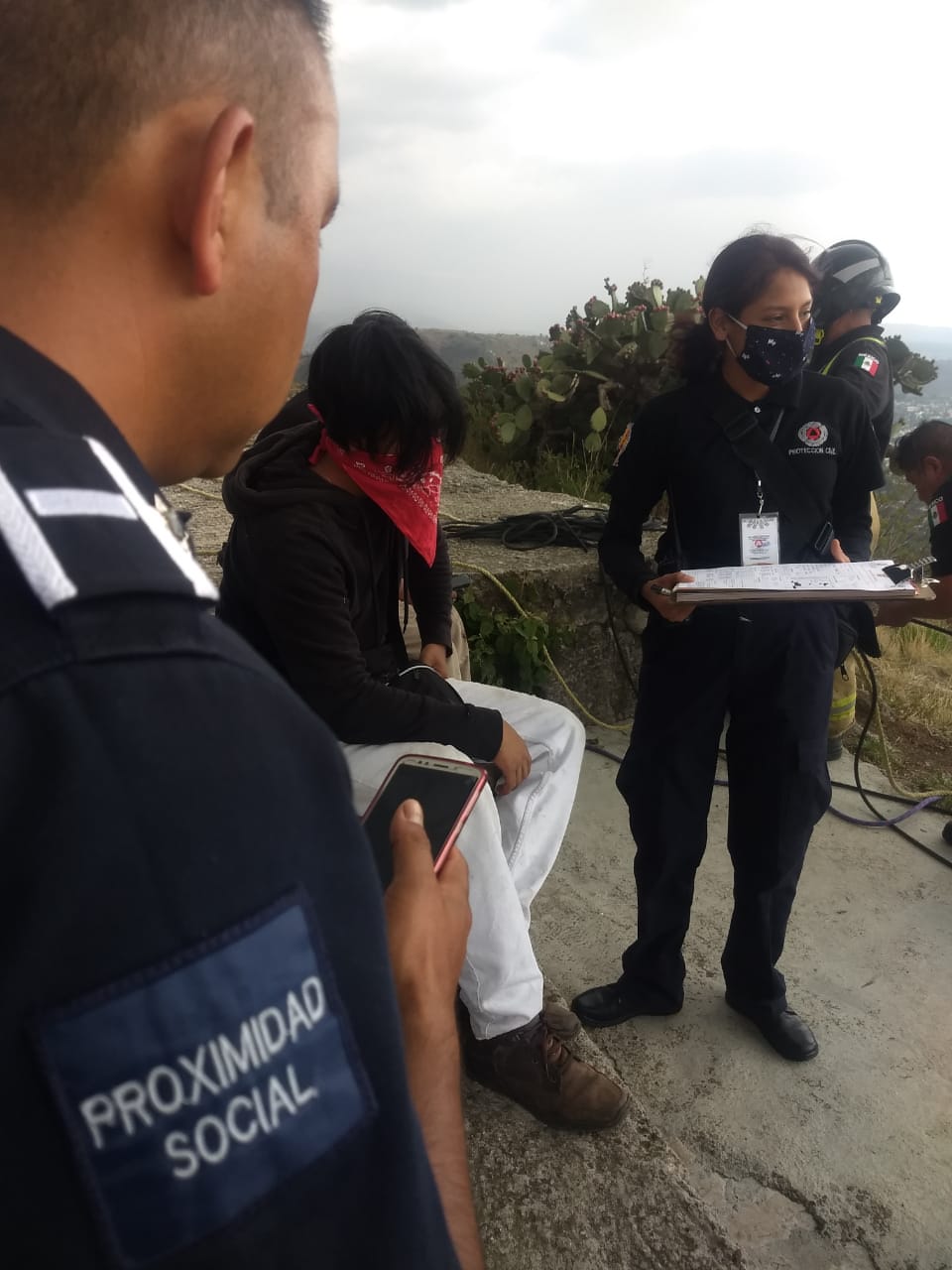 La tarde de este domingo un joven identificado como Irán Reyes Pérez con domicilio en la alcaldía de Coyoacán, pidió apoyo a los cuerpos de emergencia con su teléfono celular, ya que cayó en el cerró de La Purificación, en el municipio de Texcoco, por lo que los elementos de manera inmediata se dirigieron al lugar para su rescate.