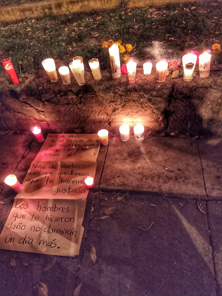 Vecinos dejan veladoras, mensajes en cartulina y oran por la joven, en el lugar donde encontraron la maleta.